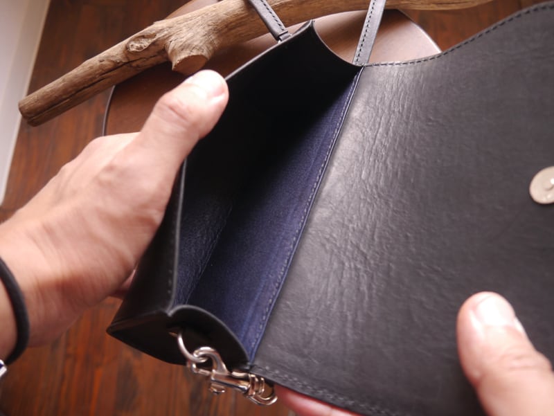 ミニサイズですが二つ折りのウォレットとスマホ程度でしたら収納する事が出来ます。