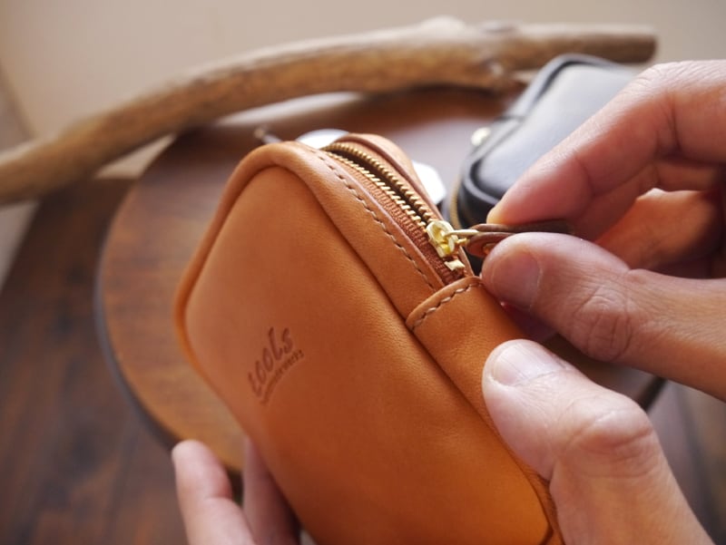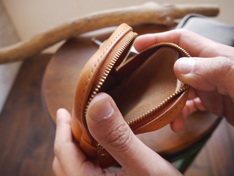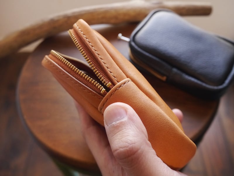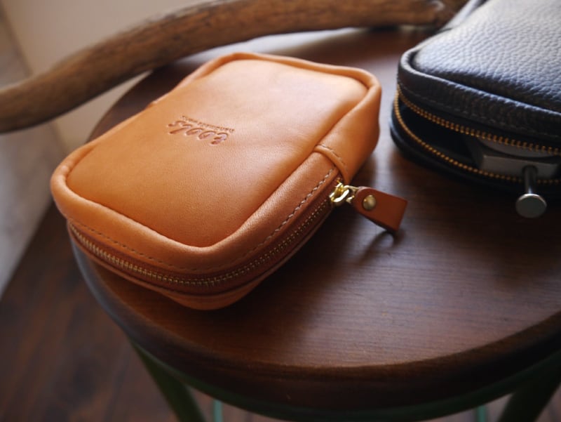 裏側から手縫いを行い最後に表に返す袋物ですので、革はソフトレザーを使うと出来上がりの形が綺麗になります。